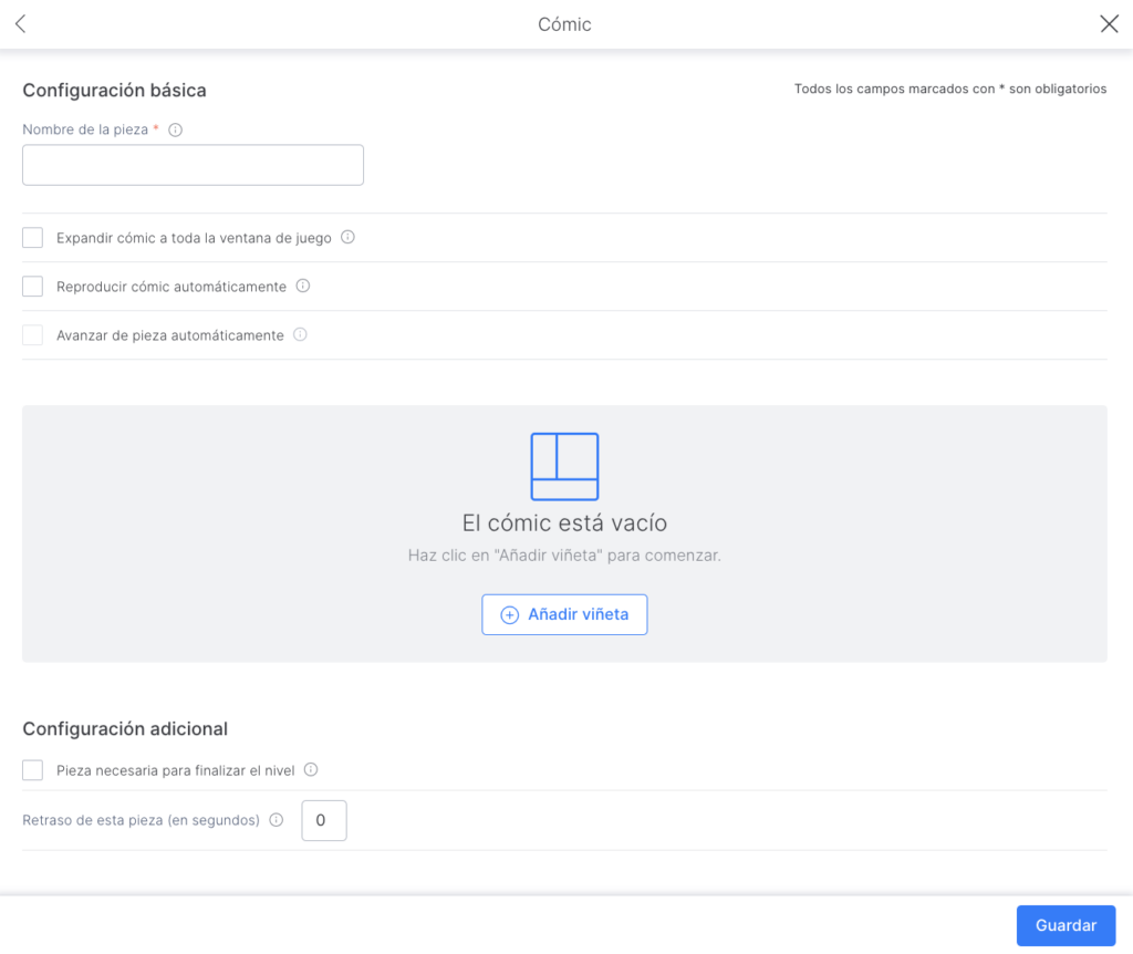 Para que las viñetas de los cómics se reproduzcan automáticamente (sin necesidad de que el jugador haga clic en el botón “Siguiente”), selecciona la opción “Reproducir cómic de forma automática”.
