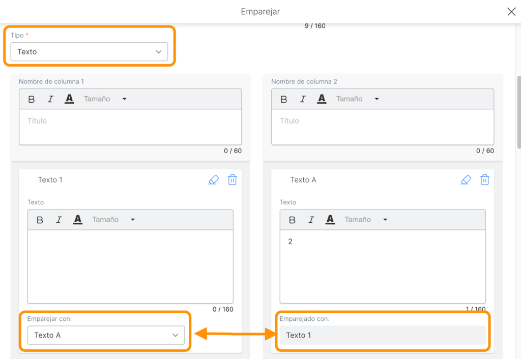 3. Añade el texto o la tarjeta correspondiente en las columnas 1 y 2. Se pueden crear hasta 10 textos (o tarjetas).