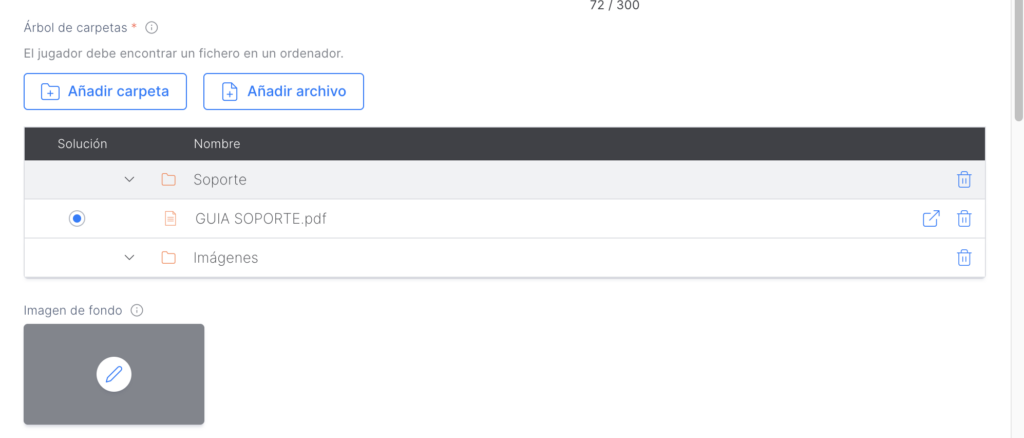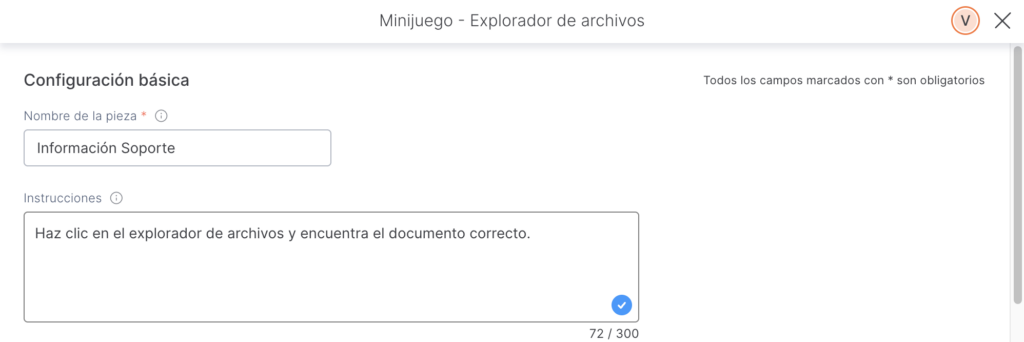 Para configurar la pieza “Minijuego – Explorador de archivos”, sigue estos pasos: