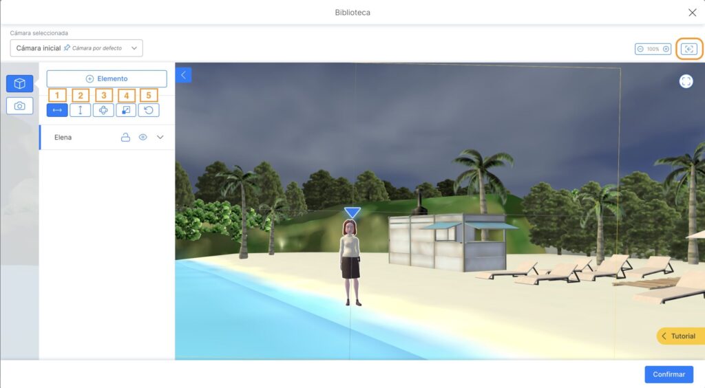 Ten en cuenta que el jugador no podrá mover ni modificar la vista que tenga de la escena. Solo verá la vista que, tú como creador/a, hayas establecido en el posicionador.