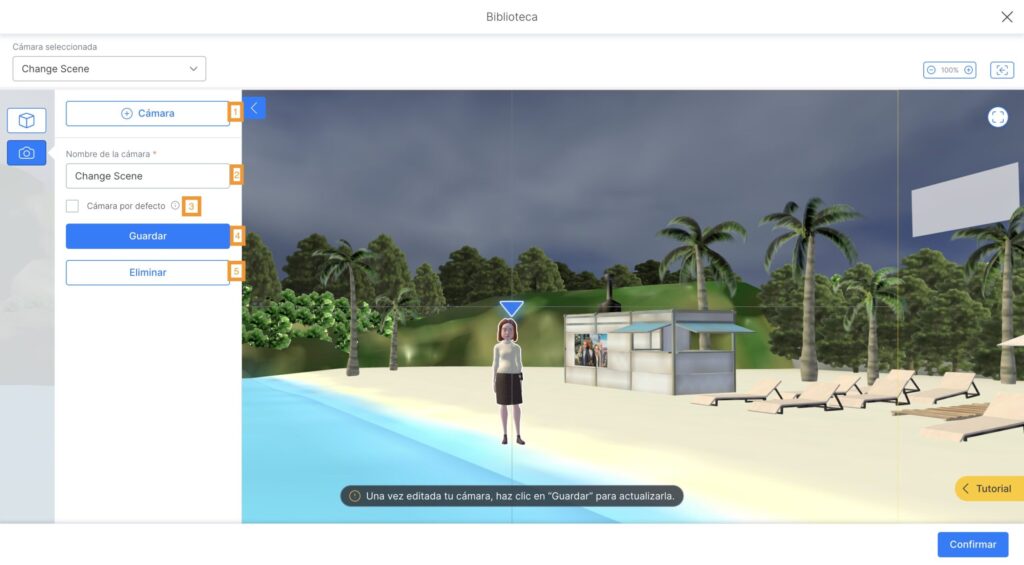 Nota: puedes establecer cualquier cámara creada como la ‘cámara por defecto’ activando esta opción en la configuración de la cámara.