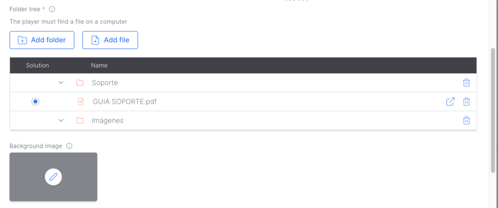 The “file browser” mini-game lets players look at and navigate different files on a computer. Choose the file you want the player to find, and they’ll solve the mini-game by finding it.