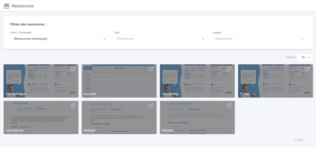 Disposer de la liste blanche et de l’infographie de Gamelearn (accessibles depuis la section « Ressources » d’Admin, dans l’onglet « Ressources techniques »).